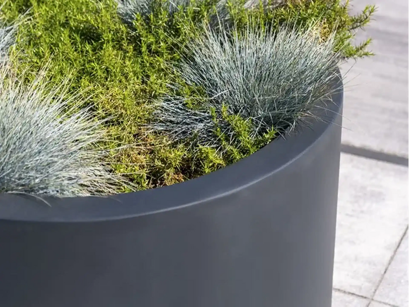 Polyester grote plantenbakken voor buiten zijn er in alle vormen, kleuren en maten en bieden meer mogelijkheden dan traditionele terracotta bakken. De kwaliteit is de afgelopen jaren sterk verbeterd, waardoor sommige varianten nauwelijks te onderscheiden zijn van andere materialen. Deze ronde plantenbak doet het goed bij de voor- of achterdeur, in de voortuin, op het terras, balkon of dakterras en zorgt voor een strakke, moderne uitstraling. Hoewel ze ook binnen mooi staan, komen ze buiten het best tot hun recht. De plantenbakken van Adezz zijn niet 100% waterdicht, maar een coating kan dit eenvoudig oplossen.
