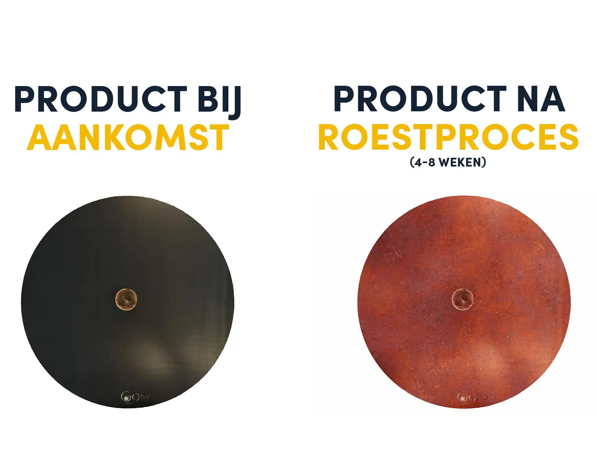 De meeste cortenstalen vuurschalen hebben bij aankoop nog niet de herkenbare oranjebruine roestkleur die je zult verwachten. Wanneer je de vuurschaal van cortenstaal binnenkrijgt, zal deze een donkergrijze staalkleur hebben met over de bak enkele roestvlekjes. De roestkleur zal zich in een periode van 8 tot 10 weken verder ontwikkelen. De snelheid waarin dit gebeurt hangt af van de omgeving en weersomstandigheden waarin de vuurschaal zich bevindt. Om het roestproces bij de vuurschaal te versnellen kun je gebruikmaken van de speciaal ontwikkelde Adeqo Cortenstaal Roestversneller. Hiermee heb je binnen enkele weken al de herkenbare bruine roestkleur op de vuurschaal.